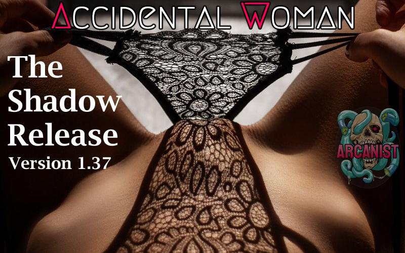 Regardless of all that madness, we're still here with a new release of Accidental Woman. This time we've got an assortment of stuffs for you. A whole new club called The Eager Breeders Club, which is pretty cool and contains a lot of content. The Aperture Technologies portal stuff has been finished and you can now buy your own Porta Portal, There are a couple minor events, some work on hucowing, an evening system option to pass on alcohol as well as interaction with addiction that could overrule your choice, and some expansion of chastity and keyholding. A very big set of improvements this month involve the menu system, further merging and simplifying the system so that you don't need to check all over in order to use various menus like grooming, the wardrobe, and the home inventory. And finally, several fixes. We FINALLY found the cause of the suiciding romantic partner NPCs, for example.